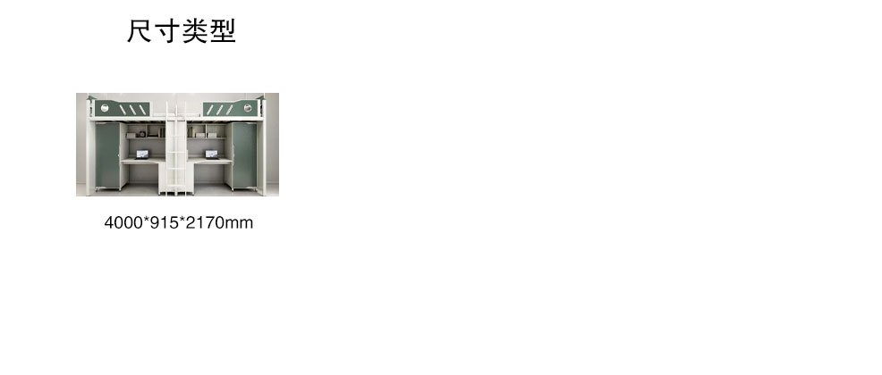 二連3人位公寓床1.整體規(guī)格:L4110*W900*H2120mm/2900mm,;2.邊立柱:采用(V65閉口型材),料厚1.2mm的閉口型管材,立面8個(gè)。立柱上下兩端口安裝工程塑料靜音內(nèi)塞,上端內(nèi)塞...